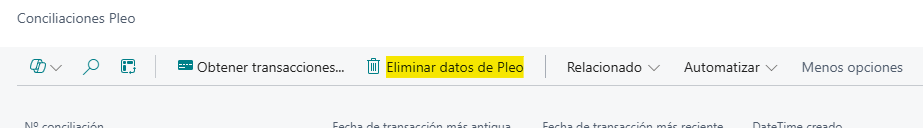 El botón "Eliminar datos de Pleo" en la pantalla "Conciliaciones Pleo", sólo se muestra si el sistema detecta que el entorno es un Sandbox (pruebas). Se utiliza para eliminar las transacciones de pruebas y no eliminamos los datos sincronizados.