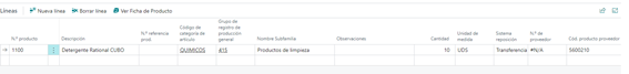 Si algún producto no está incluido se puede incluir de forma manual en una nueva línea.